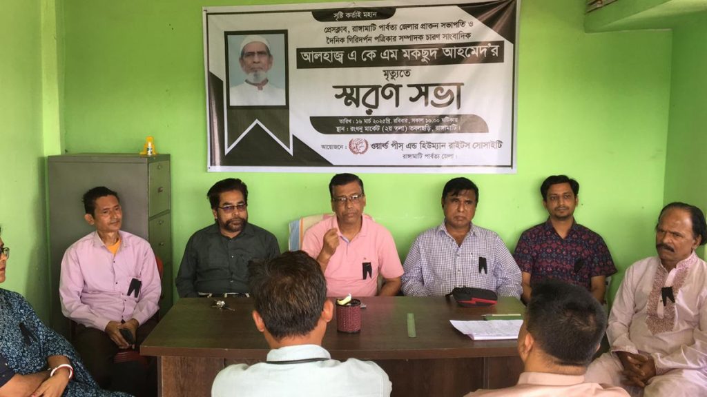 বক্তারা আরো বলেন, দীর্ঘ পথ চলায় মরহুম এ কে এম মকছুদ আহমেদ সত্য সংবাদ প্রকাশ হতে কখনো নিজেকে বিরত রাখেননি কোন দিন। তার লেখনির মাধ্যমে পার্বত্য চট্টগ্রামের সমস্যা, সম্ভাবনা, পার্বত্য চট্টগ্রাম চুক্তিসহ বিভিন্ন বিষয় নিয়ে পাহাড়ের মানুষের কথা দেশ বিদেশের পত্র পত্রিকায় তুলে ধরেছেন। পাহাড়ের আর্থ সামাজিক উন্নয়ন, পার্বত্য শান্তি চুক্তিসহ প্রতিটি ক্ষেত্রে তার অবদান কম নয়। তাই এ কে এম মকছুদ আহমেদ এই পার্বত্য অঞ্চলের সাংবাদিকতার বাতিঘর। যখন পার্বত্য এলাকায় তথ্য প্রযুক্তি উন্নত ছিলো না তখন তিনি মাইলের পর মাইল হেঁটে সংবাদ সংগ্রহ করে তা প্রকাশ করেছেন নিঃসংকোচে। তাই তার হঠাৎ মৃত্যুতে পুরো পার্বত্য জেলায় একজন অভিভাবক হারালো। তার শুন্যস্থান কখনে পুরন হওয়ার নয়।