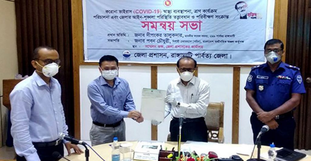 রাঙ্গামাটি জেলা পরিষদ সদস্য ত্রিদীব কান্তি দাশ বলেন, করোনা পরিস্থিতিতে রাঙ্গামাটি জেলা পরিষদ রাঙ্গামাটি জেলায় ৬০০ মেট্রিক টন খাদ্য শষ্য ও ৪২ লক্ষ টাকা বিতরণ করেছে। এই বিতরণ কার্যক্রমের মধ্যে দিয়ে রাঙ্গামাটি জেলার ইউনিয়ন পরিষদ চেয়ারম্যান মেম্বারদেরকে সম্পৃক্ত করে রাঙ্গামাটি জেলা পরিষদের সদস্যরা কাজ করে গেছে। তিনি বলেন, দেশের এই ক্রান্তি লগ্নে রাঙ্গামাটি জেলাবাসীর প্রাণের দাবী পিসিআর ল্যাব স্থাপনে বাংলাদেশ অর্থনৈতিক অঞ্চল কর্তৃপক্ষের নির্বাহী চেয়ারম্যান যে দায়িত্ব শীলতার পরিচয় দিয়েছেন তার জন্য তাকে ধন্যবাদ না জানিয়ে পারছি না।