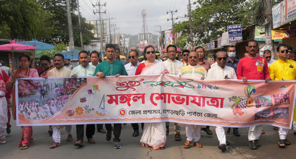॥ খাগড়াছড়ি প্রতিনিধি ॥ সারাদেশের ন্যায় খাগড়াছড়িতেও বাংলা নববর্ষ ও পহেলা বৈশাখ বর্ণিল শোভাযাত্রা অনুষ্ঠিত হয়েছে। বৃহস্পতিবার (১৪ এপ্রিল) সকালে জেলা প্রশাসকের কার্যালয় থেকে বর্ণাঢ্য আনন্দ শোভাযাত্রা শুরু হয়ে শাপলা চত্বর ঘুরে জেলা শহরের টাউন হলে এসে শেষ হয়। পরে সাংস্কৃতিক অনুষ্ঠান পরিবেশন করা হয়। বর্ণাঢ্য শোভাযাত্রায় খাগড়াছড়ি জেলা প্রশাসক প্রতাপ চন্দ্র বিশ্বাস প্রতাপ চন্দ্র বিশ্বাসের সভাপতিত্বে প্রধান অতিথি হিসেবে উপস্থিত ছিলেন, ভারত প্রত্যাগত উপজাতীয় শরনার্থী বিষয়ক টাস্কফোর্স’র চেয়ারম্যান (প্রতিমন্ত্রী পদমর্যাদা) কুজেন্দ্র লাল ত্রিপুরা এমপি।