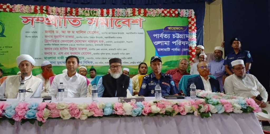 পার্বত্য চট্টগ্রাম ওলামা পরিষদ কেন্দ্রীয় কমিটির সভাপতি মাওলানা হাজী শরীয়ত উল্লাহর সভাপতিত্বে এবং সাধারন সম্পাদক মাওলানা মুহাম্মদ আবু বক্কর সিদ্দিকের সঞ্চালনায় অনুষ্ঠিত সম্প্রীতি সমাবেশে বিশেষ অতিথি ছিলেন, ধর্ম বিষয়ক মন্ত্রণালয়ের যুগ্ম সচিব সাদেক হোসেন, রাঙ্গামাটি জেলা প্রশাসক মো: হাবিব উল্লাহ মারুফ, জেলা পুলিশ সুপার ড. এস এম ফরহাদ হোসেন প্রমুখ। এছাড়া সম্প্রীতি সমাবেশে সকাল থেকে বিভিন্ন জেলা উপজেলার মসজিদ, মন্দির, বিহারসহ নানা ধর্মীয় প্রতিষ্ঠান থেকে আগত নেদৃবৃন্দরা বক্তব্য রাখেন।