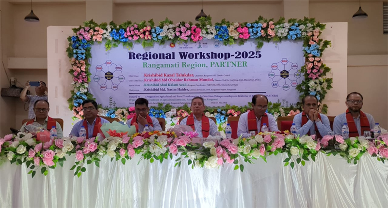রাঙ্গামাটিতে পার্বত্য চট্টগ্রামের কৃষি কর্মকতা ও কৃষকদের নিয়ে আঞ্চলিক কর্মশালা পাহাড়ের সম্ভাবনাময় কৃষিকে কিভাবে আরো আধুনিকায়ন করা যায় সেদিকে নজর দিতে হবে ——কৃষিবিদ কাজল তালুকদার মে ২১, ২০২৫