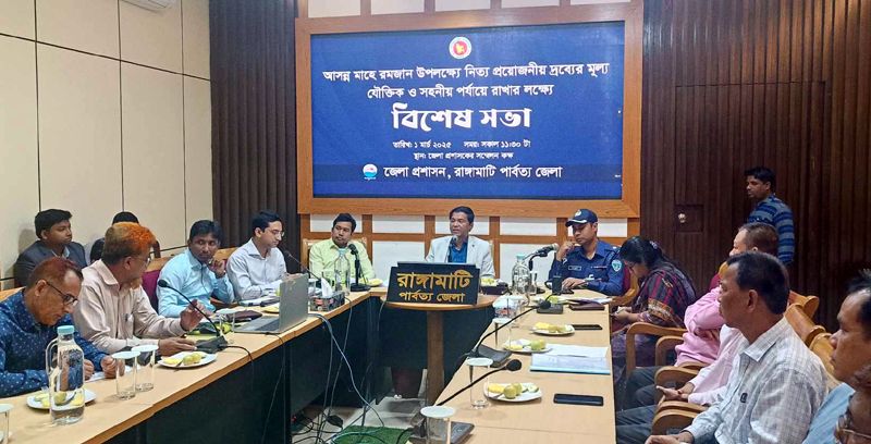 নিত্যপ্রয়োজনীয় দ্রব্যের মূল্য সহনীয় রাখতে রাঙ্গামাটিতে জেলা প্রশাসনের বিশেষ সভা দ্রব্যমূল্যের দাম বৃদ্ধিসহ সরকারী নির্দেশনা অমান্যকারীদের বিরুদ্ধে কঠোর ব্যবস্থা নেয়া হবে—মোহাম্মদ হাবিব উল্ল্যাহ মার্চ ১, ২০২৫